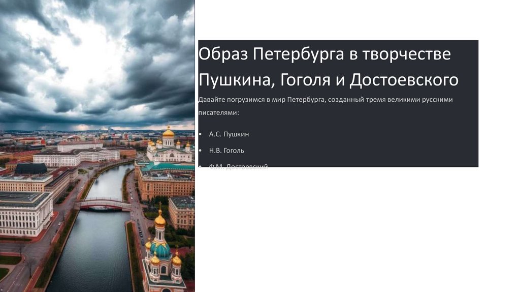 Образ Петербурга в творчестве Пушкина, Гоголя и Достоевского