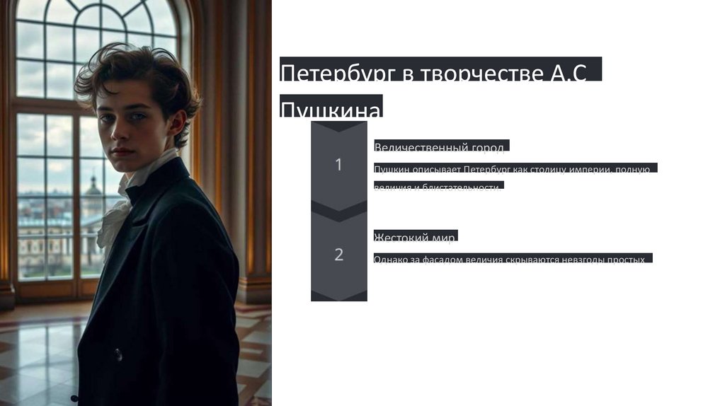 Пушкин описывает Петербург как столицу империи, полную