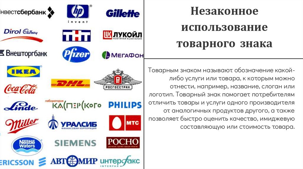 Товарным знаком называют обозначение какойлибо услуги или товара, к которым можно