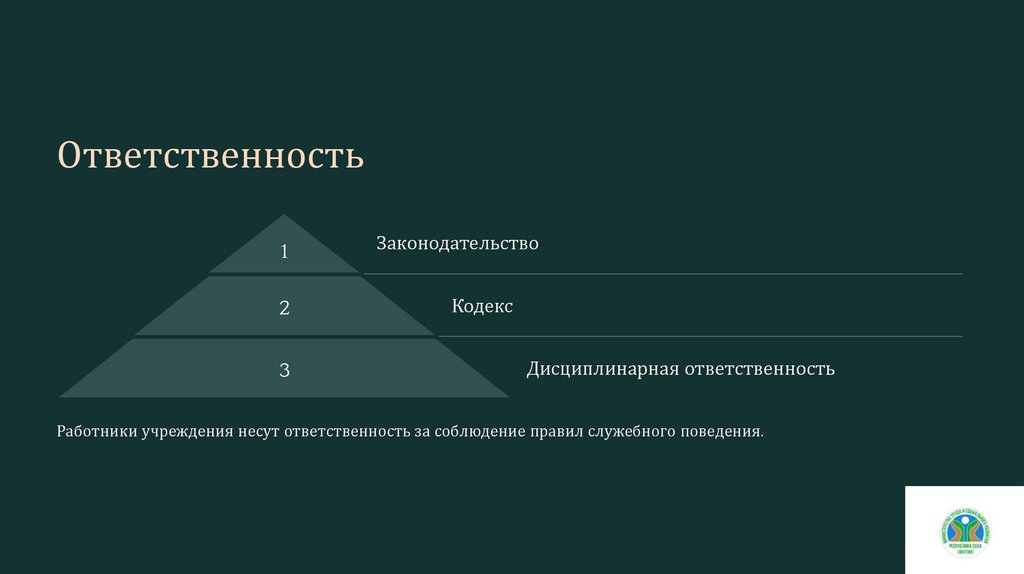 Работники учреждения несут ответственность за соблюдение правил служебного поведения.