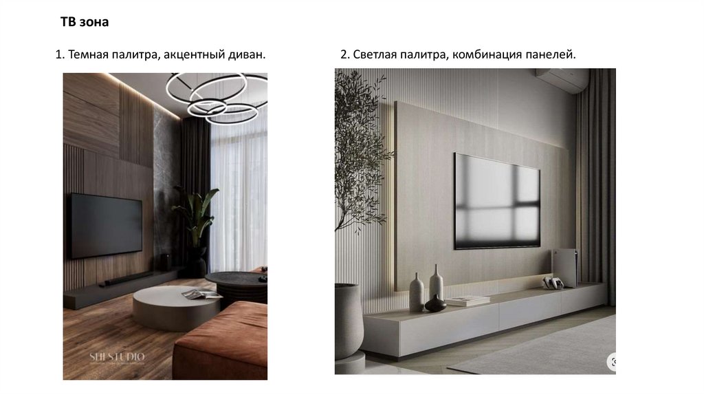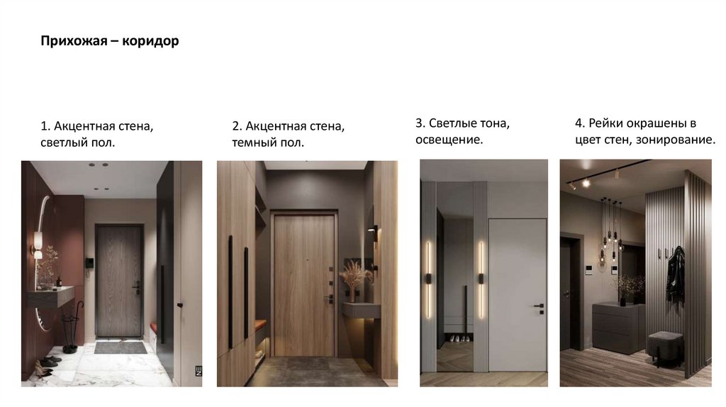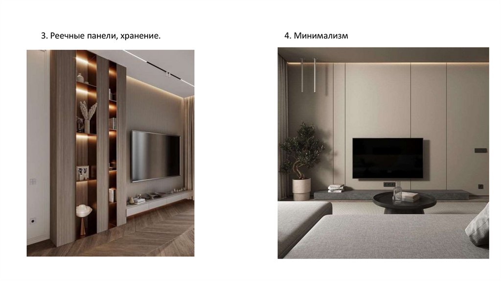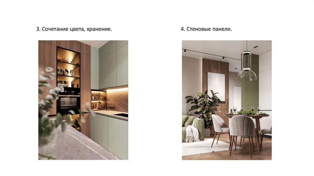 3. Сочетание цвета, хранение.4. Стеновые панели.
