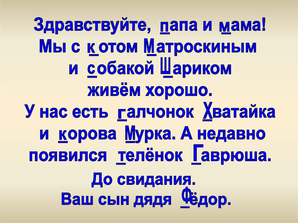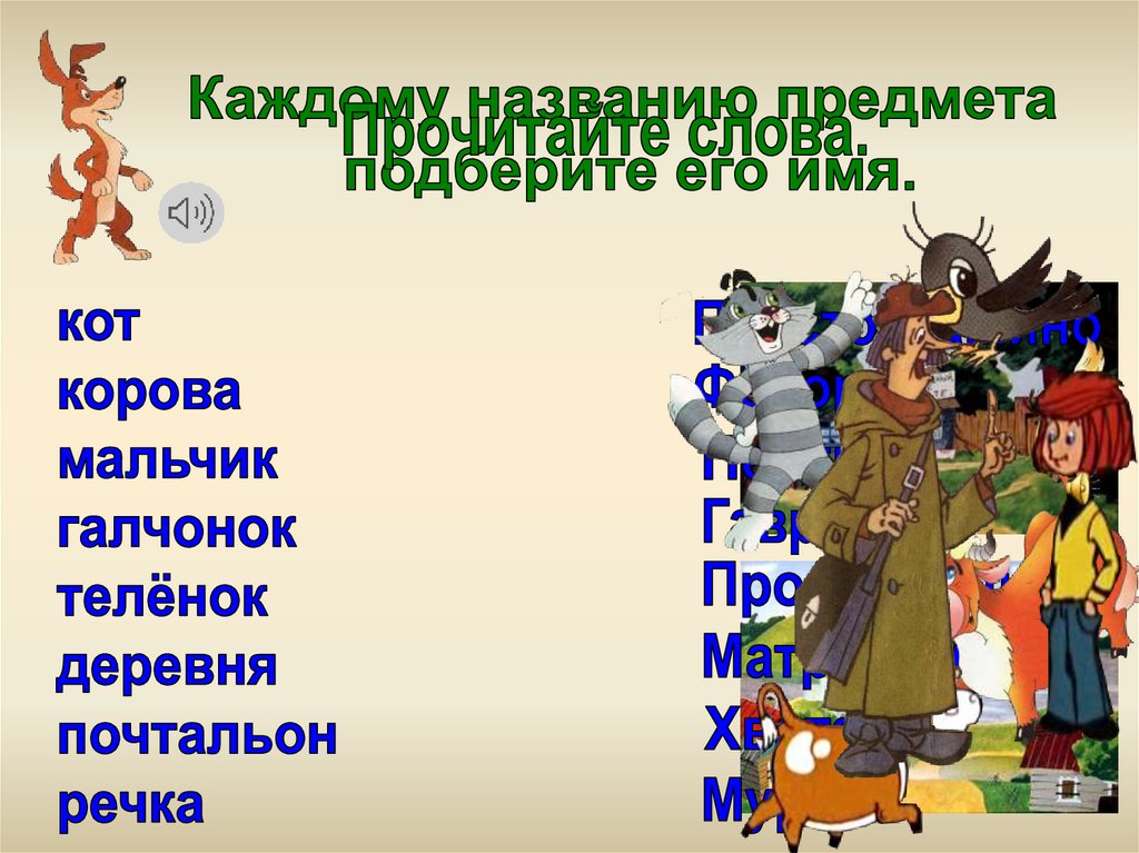 Имена собственные. Простоквашино. Словарный диктант
