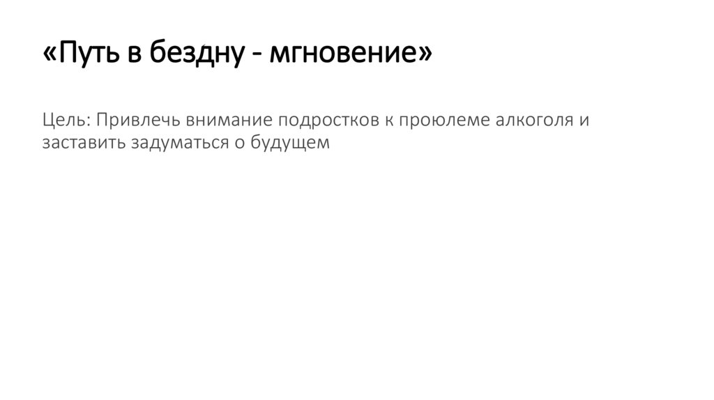 «Путь в бездну - мгновение»Цель: Привлечь внимание подростков к проюлеме алкоголя и