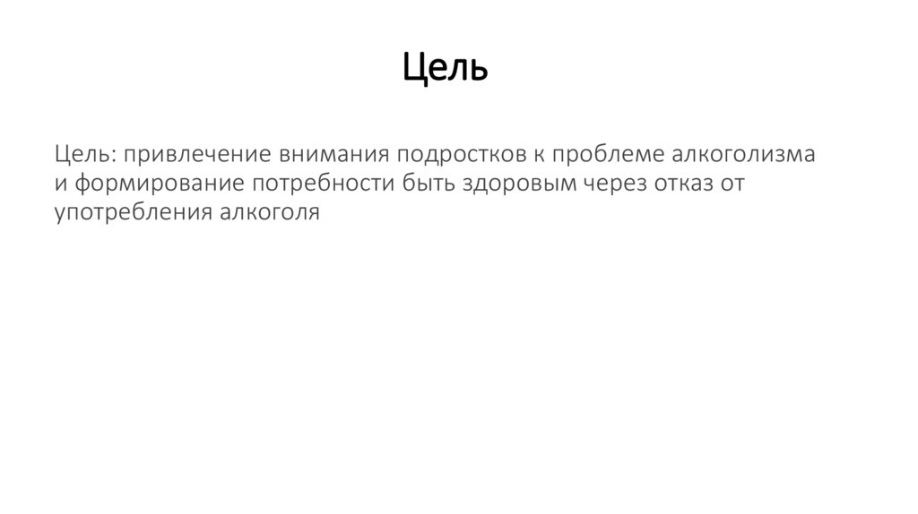 ЦельЦель: привлечение внимания подростков к проблеме алкоголизма