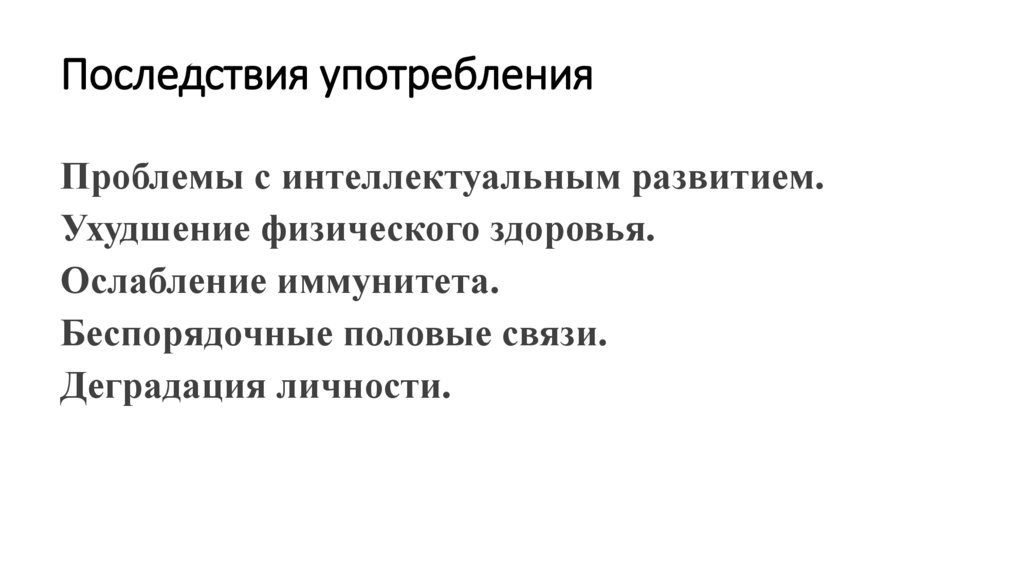 Последствия употребленияПроблемы с интеллектуальным развитием.