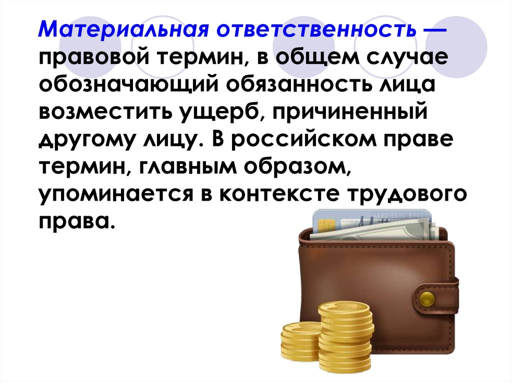 Материальная ответственность —правовой термин, в общем случае
