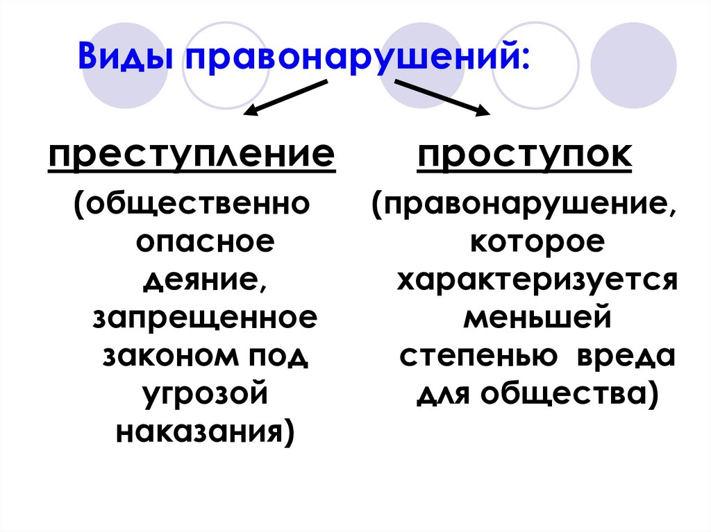 правонарушения, выписать виды