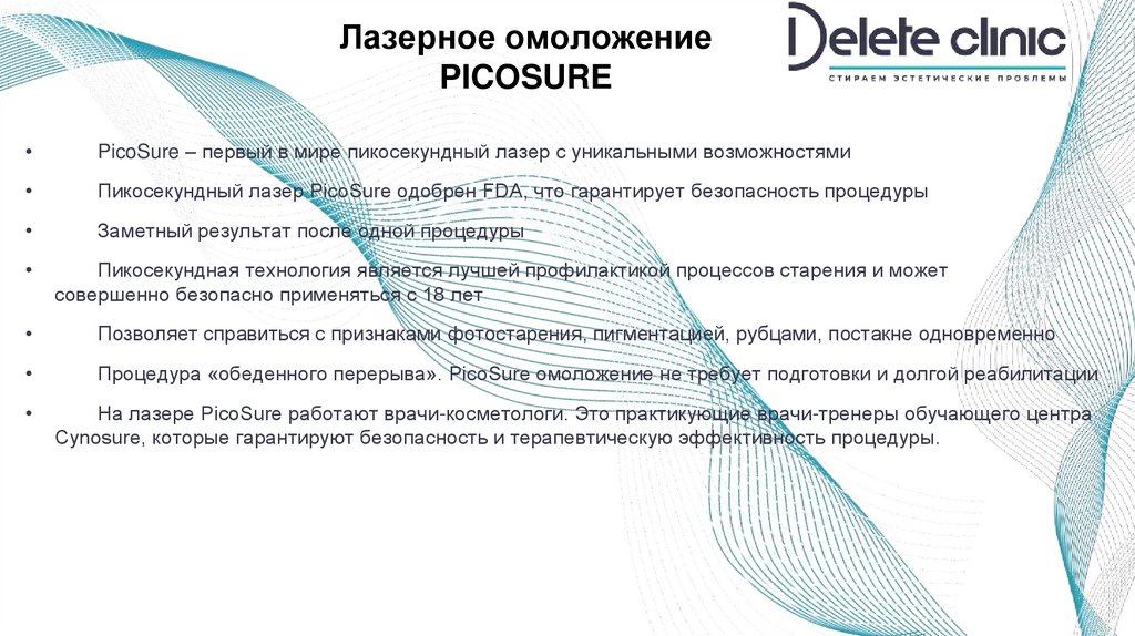 PicoSure - это первый в мире пикосекундный лазер, одобренный FDA и сертифицированный в Росси в том числе при
