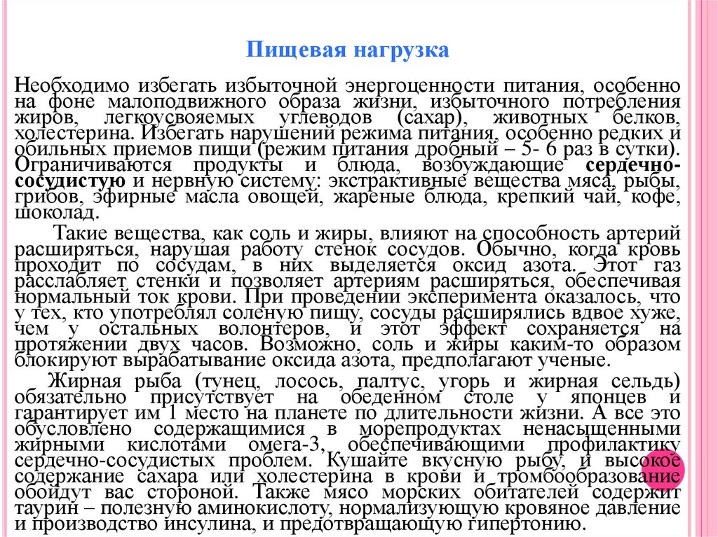 Пищевая нагрузкаНеобходимо избегать избыточной энергоценности питания, особенно