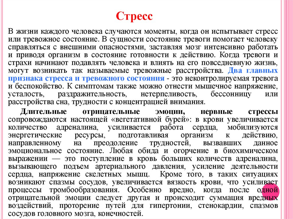 СтрессВ жизни каждого человека случаются моменты, когда он испытывает стресс