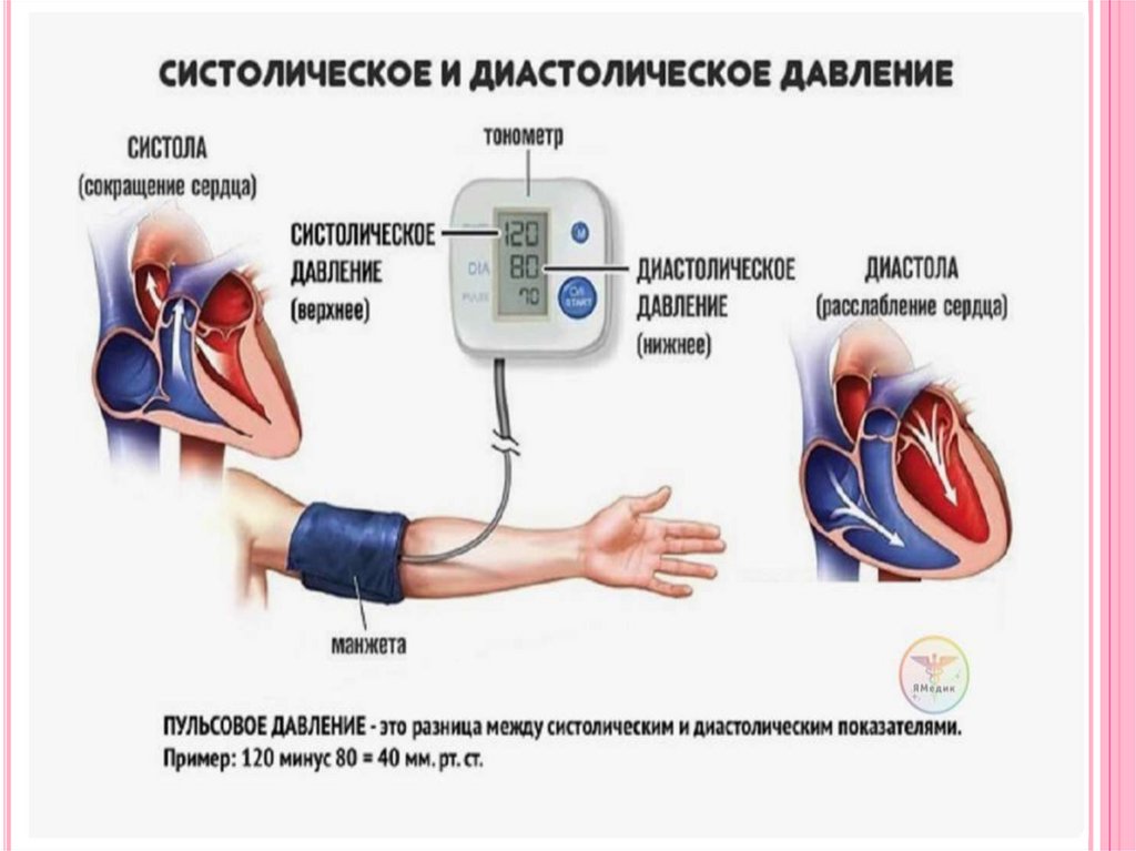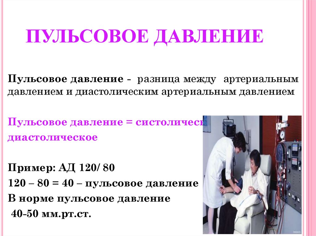 120 – 80 = 40 – пульсовое давление
