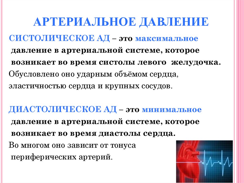 АРТЕРИАЛЬНОЕ ДАВЛЕНИЕСИСТОЛИЧЕСКОЕ АД – это максимальное