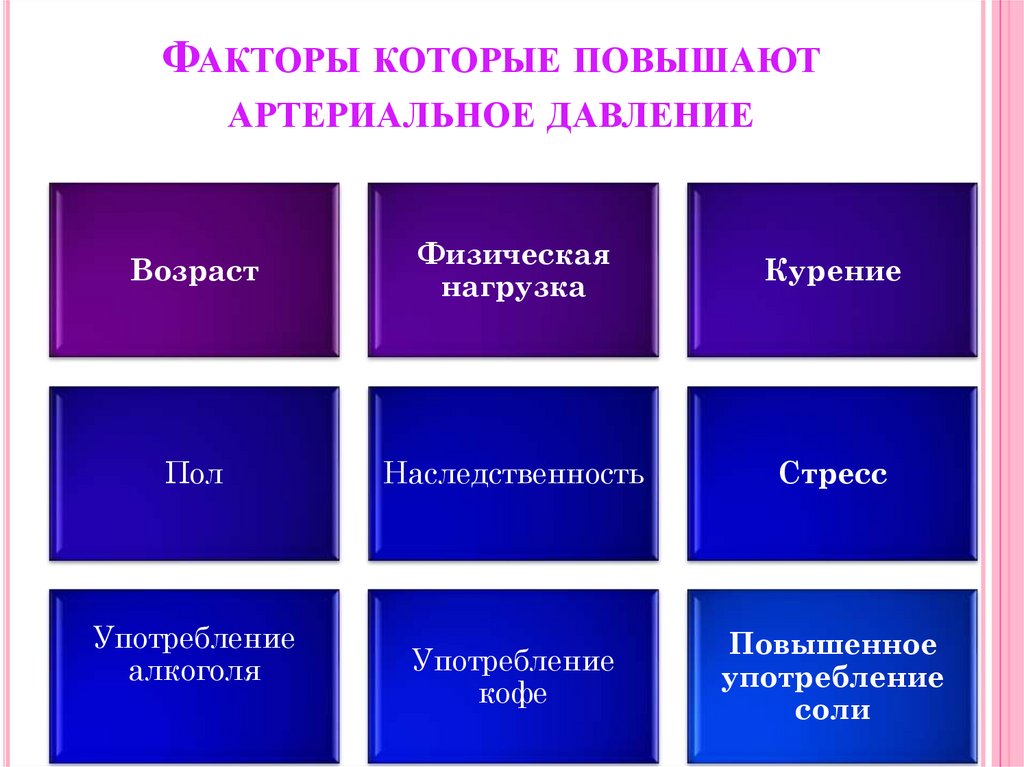 ФАКТОРЫ КОТОРЫЕ ПОВЫШАЮТАРТЕРИАЛЬНОЕ ДАВЛЕНИЕ