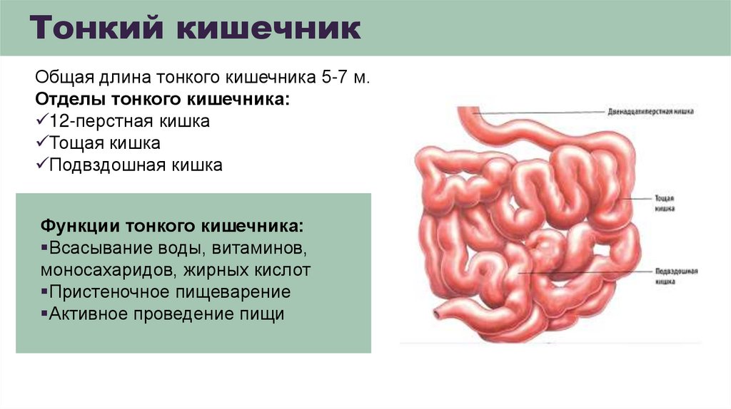 Тонкий кишечникОбщая длина тонкого кишечника 5-7 м.