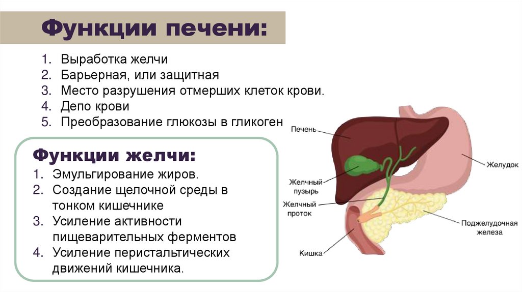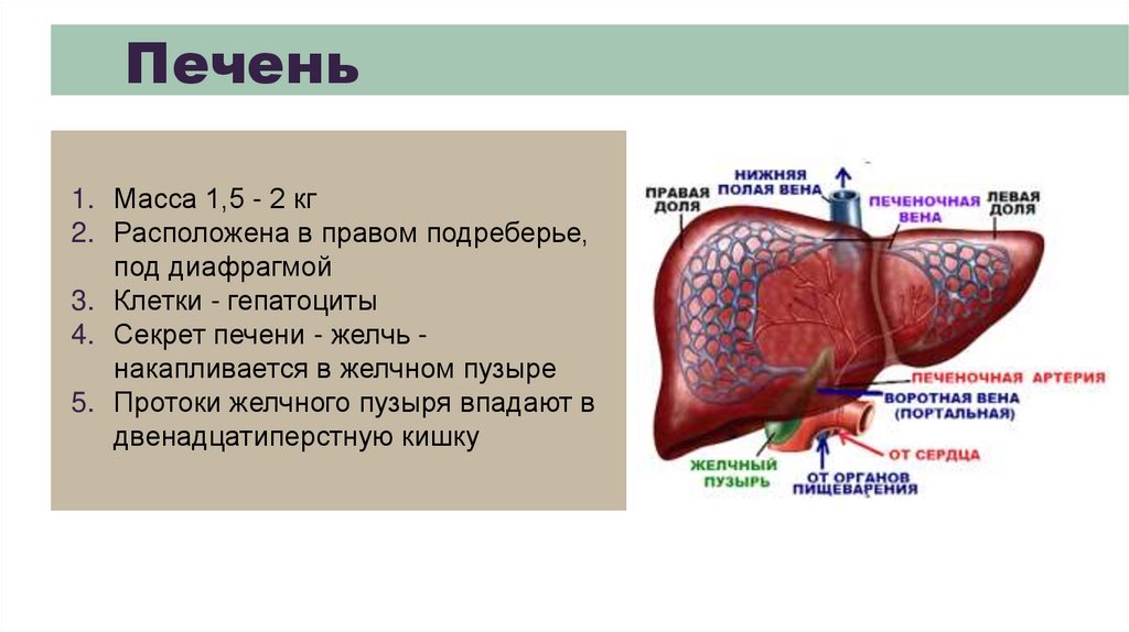 4. Секрет печени - желчь накапливается в желчном пузыре