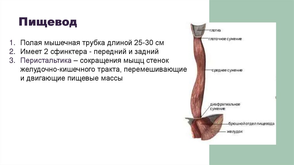 Пищевод1. Полая мышечная трубка длиной 25-30 см