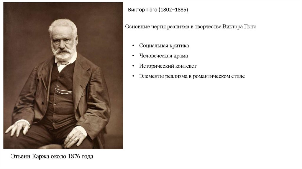 Виктор Гюго (1802–1885)Основные черты реализма в творчестве Виктора Гюго