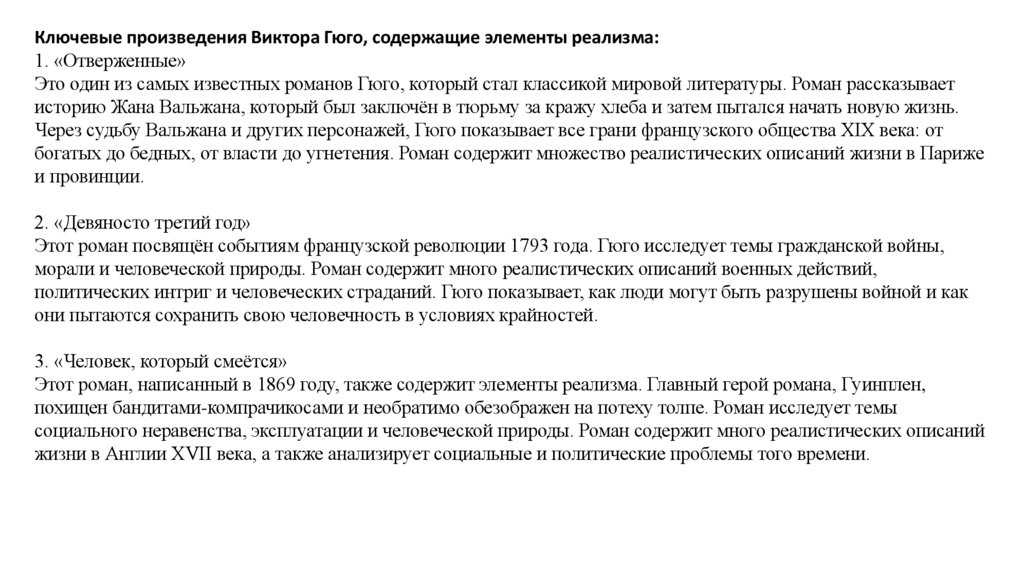 Ключевые произведения Виктора Гюго, содержащие элементы реализма:1. «Отверженные»