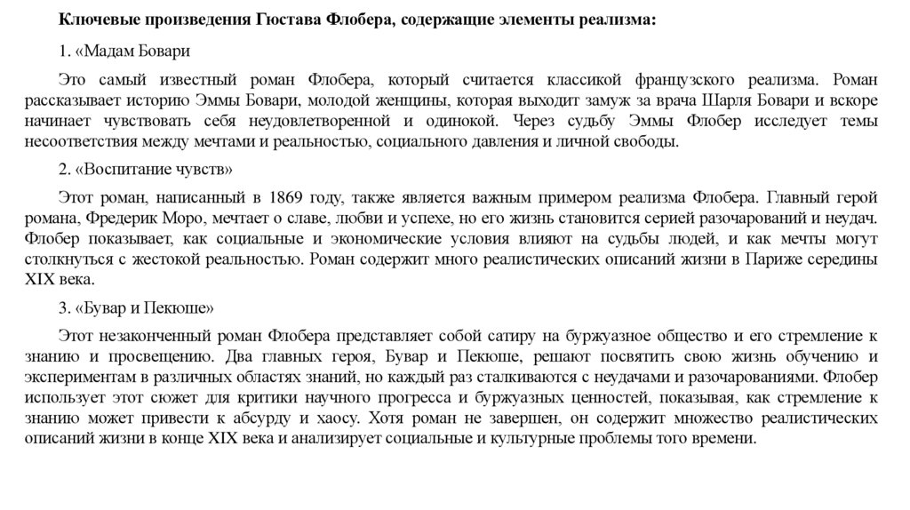 Ключевые произведения Гюстава Флобера, содержащие элементы реализма:1. «Мадам Бовари