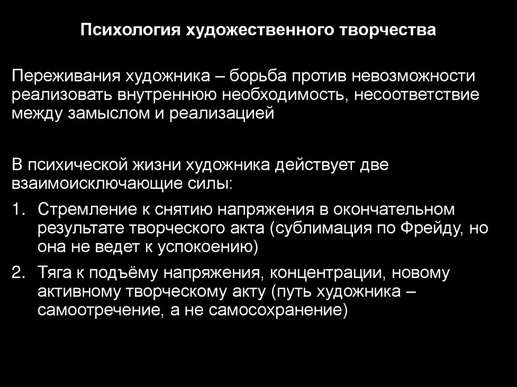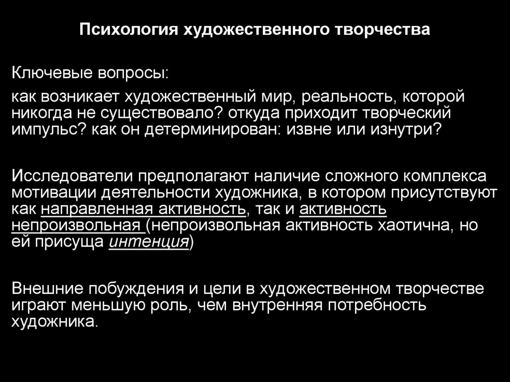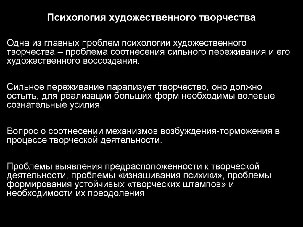 Психология художественного творчестваОдна из главных проблем психологии художественного
