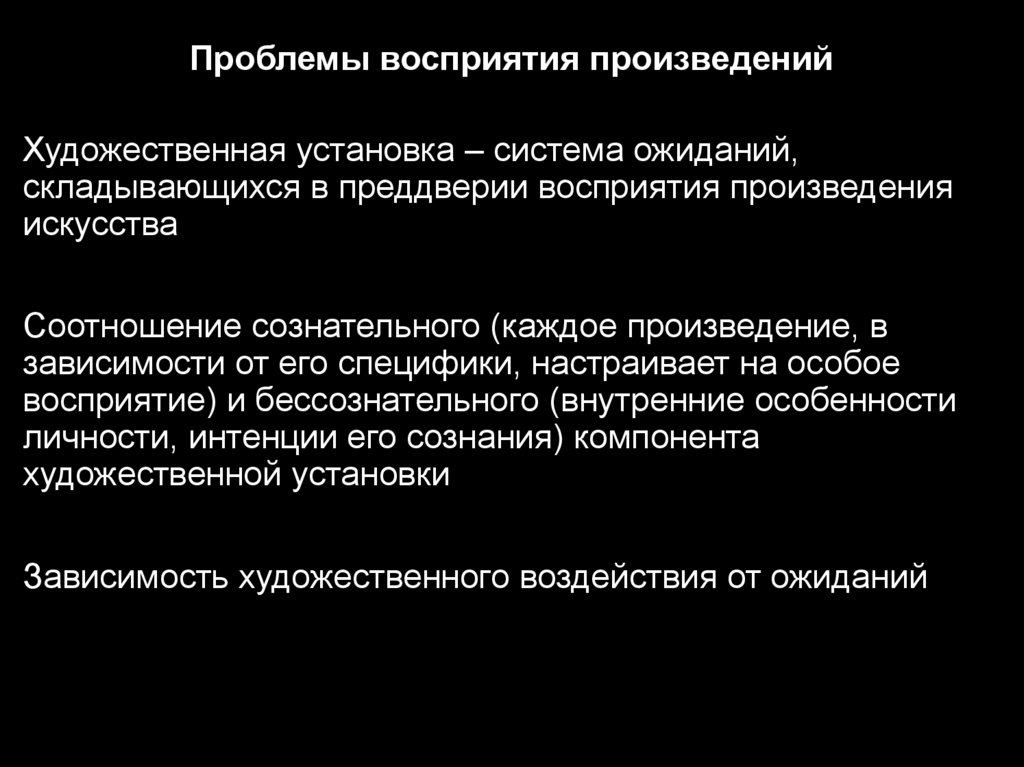 Проблемы восприятия произведенийХудожественная установка – система ожиданий,