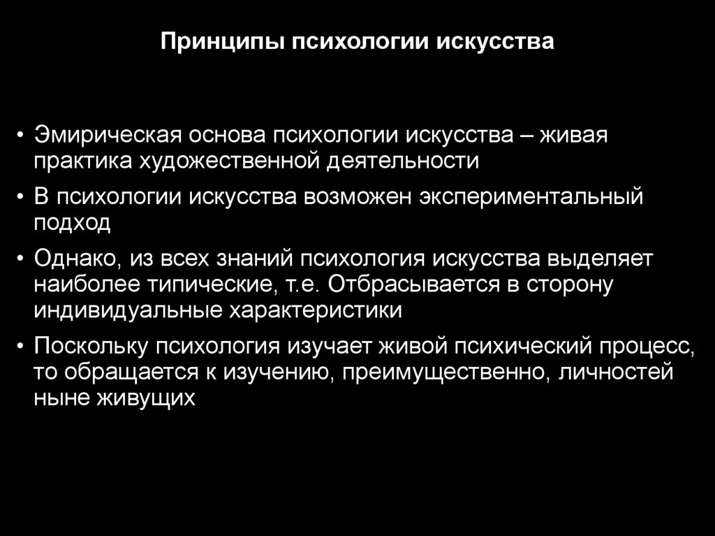 Принципы психологии искусства• Эмирическая основа психологии искусства – живая