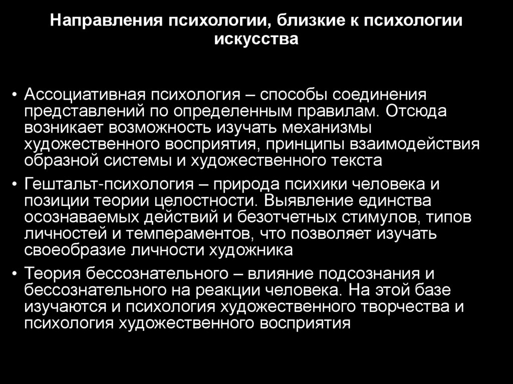 Направления психологии, близкие к психологииискусства