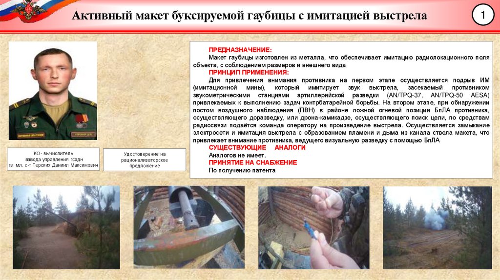 Активный макет буксируемой гаубицы с имитацией выстрелаКО- вычислитель