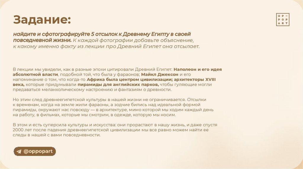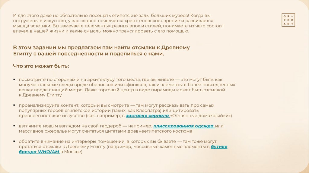 Задание:найдите и сфотографируйте 5 отсылок к Древнему Египту в своей
