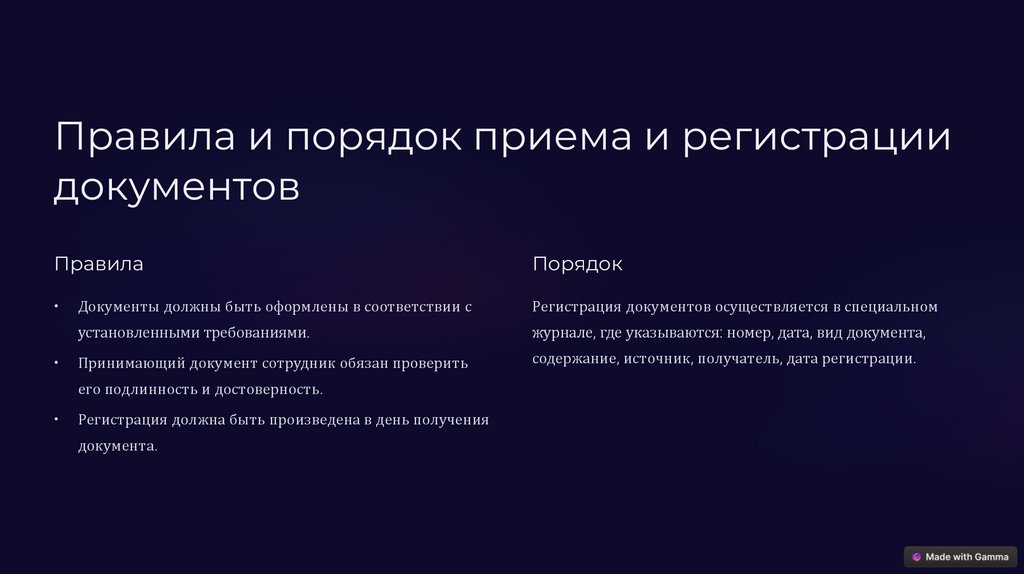 Правила и порядок приема и регистрациидокументов