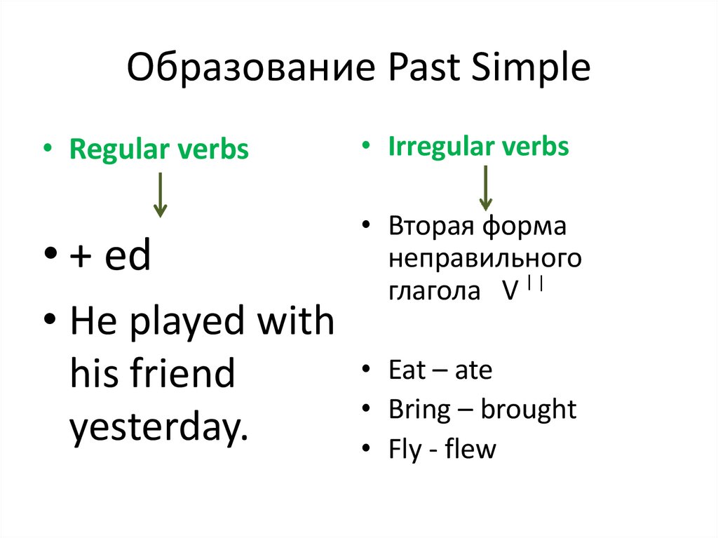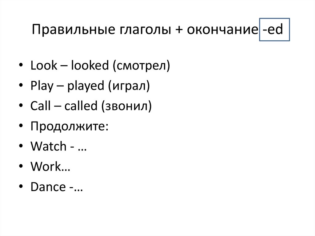Правильные глаголы + окончание -ed• Look – looked (смотрел)