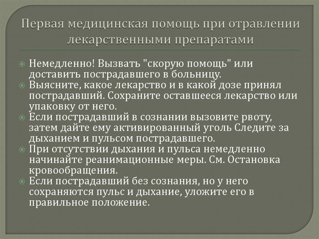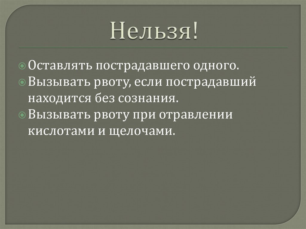 Оставлять пострадавшего одного.Вызывать рвоту, если пострадавший