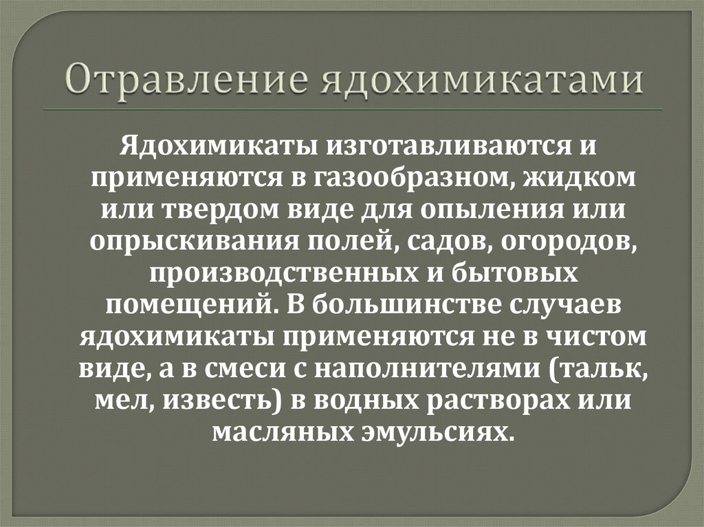 Ядохимикаты изготавливаются иприменяются в газообразном, жидком