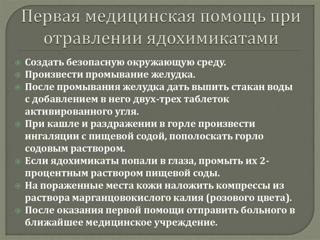 33. Первая медицинская помощь при отравлении ядохимикатами