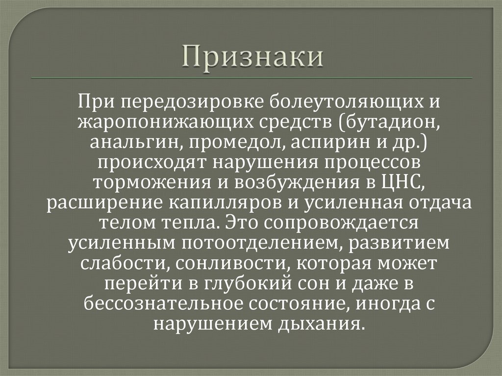 При передозировке болеутоляющих ижаропонижающих средств (бутадион,