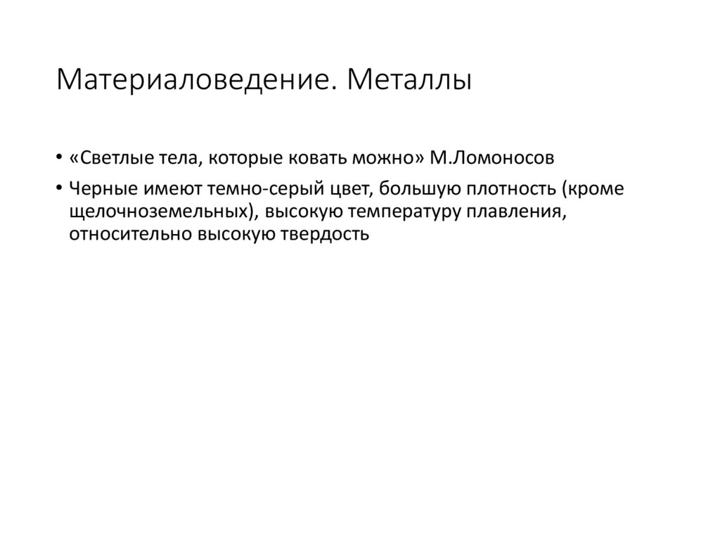 • «Светлые тела, которые ковать можно» М.Ломоносов• Черные имеют темно-серый цвет, большую плотность (кроме