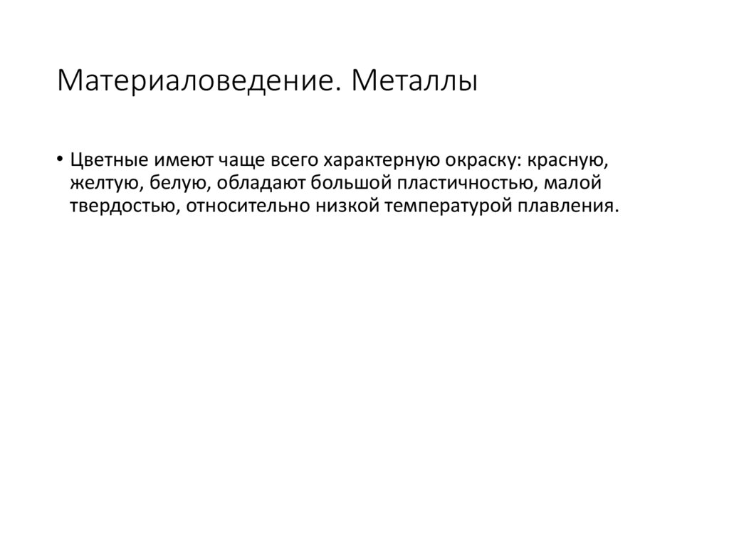 • Цветные имеют чаще всего характерную окраску: красную,желтую, белую, обладают большой пластичностью, малой