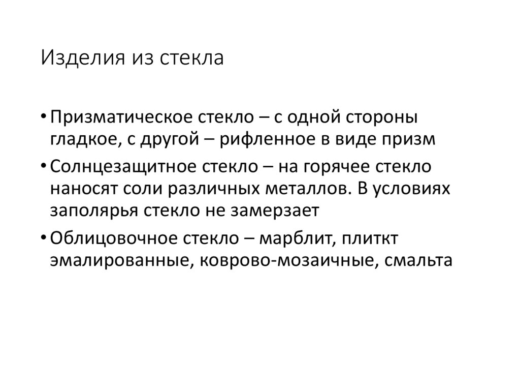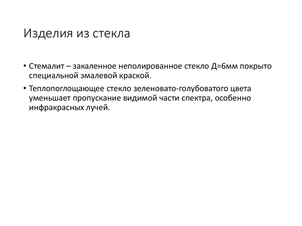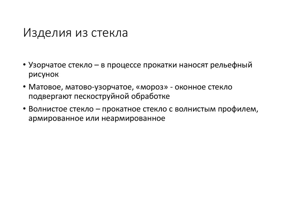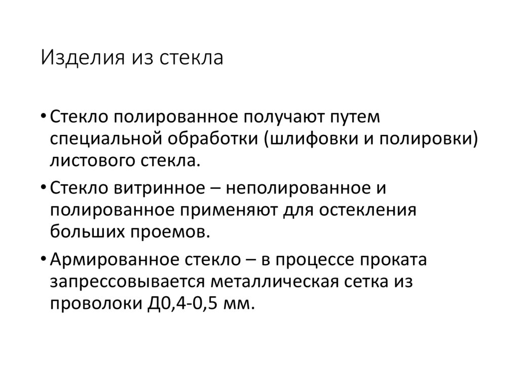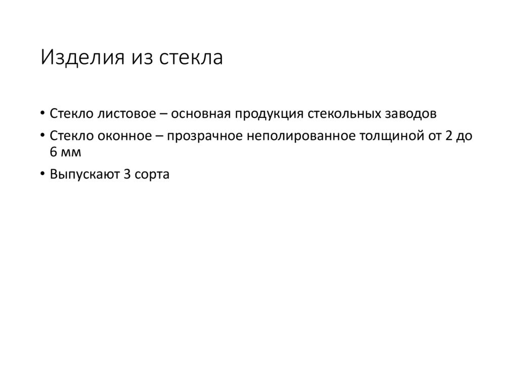 • Стекло листовое – основная продукция стекольных заводов• Стекло оконное – прозрачное неполированное толщиной от 2 до