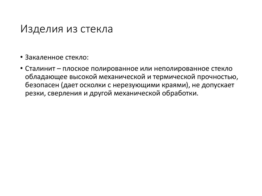 • Закаленное стекло:• Сталинит – плоское полированное или неполированное стекло