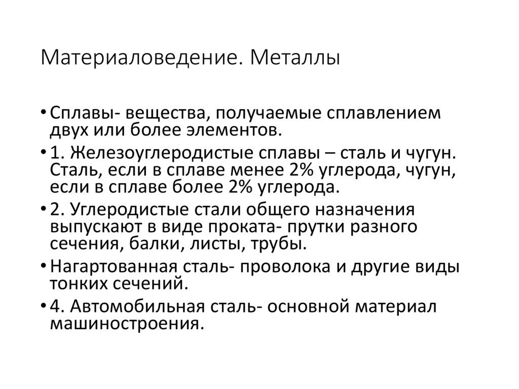 • 1. Железоуглеродистые сплавы – сталь и чугун.