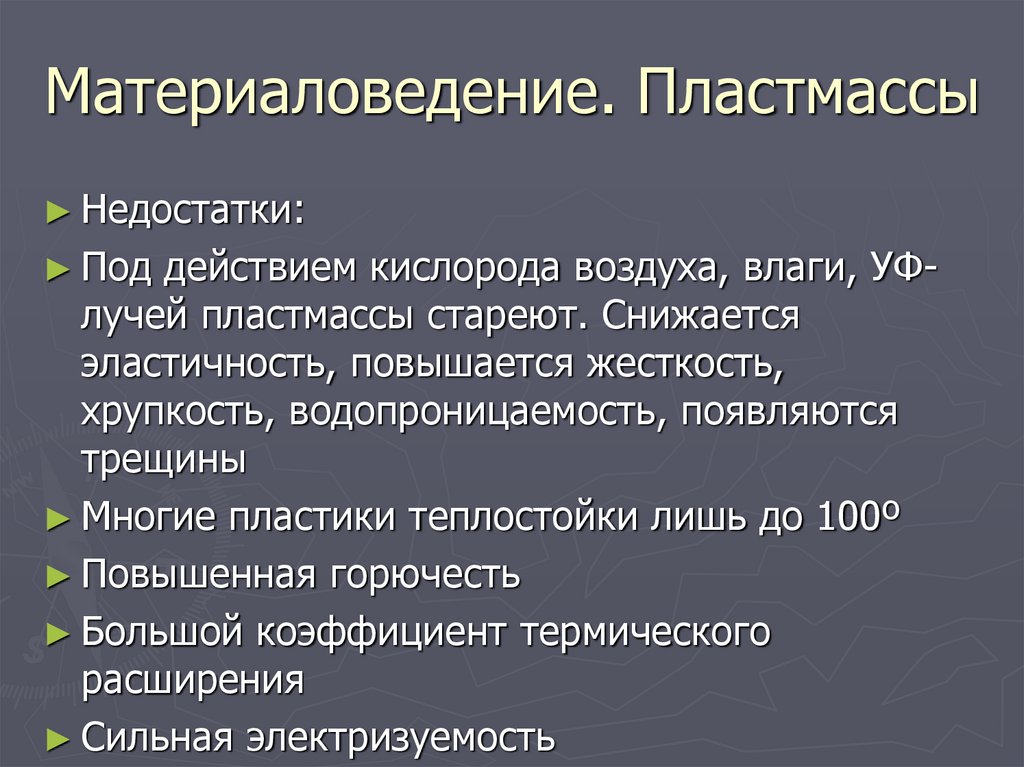 ► Недостатки:► Под действием кислорода воздуха, влаги, УФ-