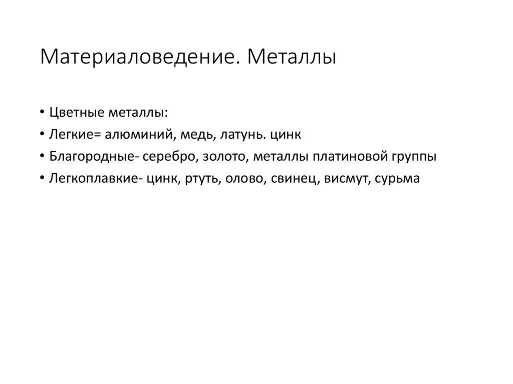 • Легкоплавкие- цинк, ртуть, олово, свинец, висмут, сурьма