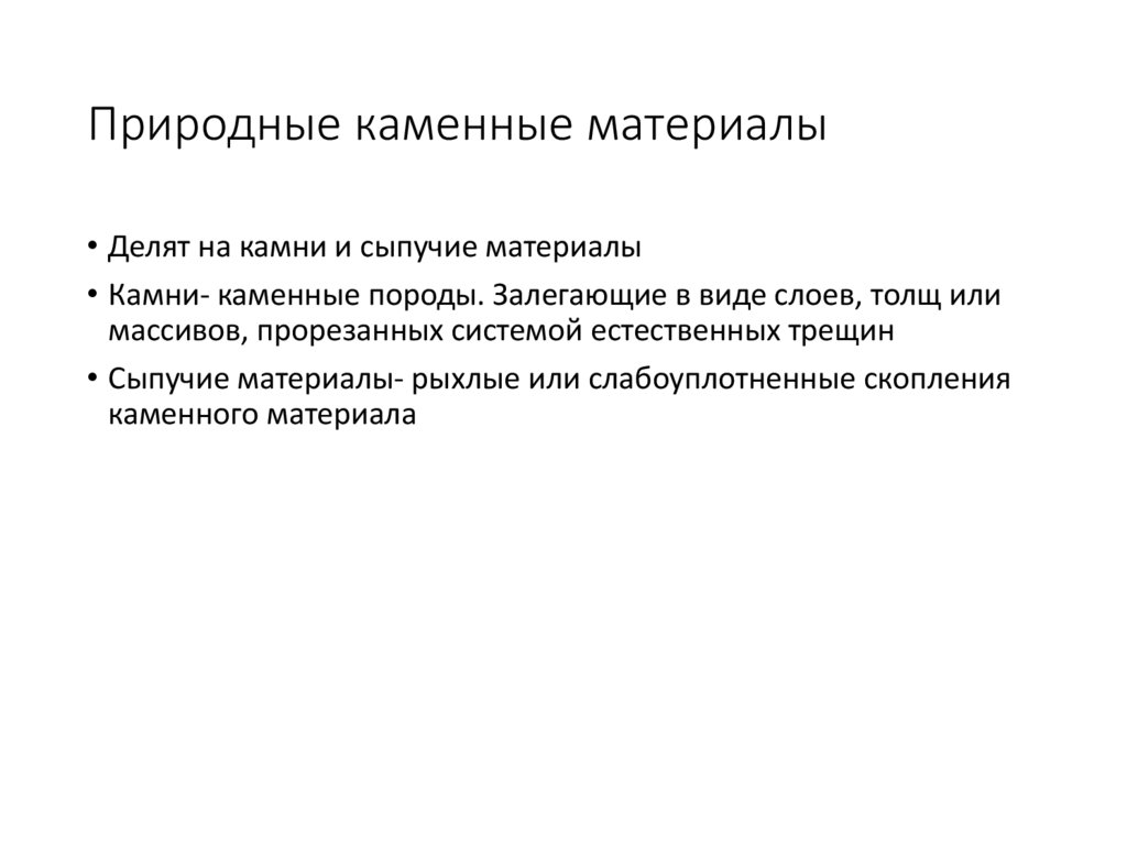 • Делят на камни и сыпучие материалы• Камни- каменные породы. Залегающие в виде слоев, толщ или