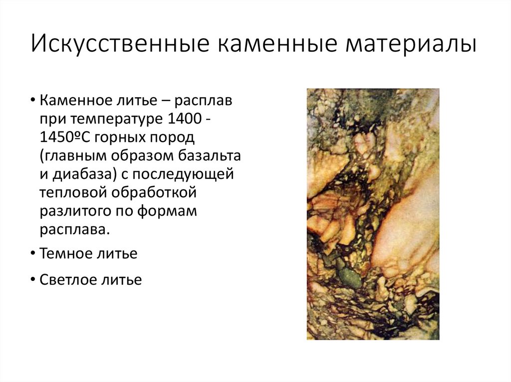 • Каменное литье – расплавпри температуре 1400 1450ºС горных пород