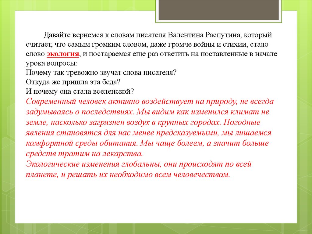 слово экология, и постараемся еще раз ответить на поставленные в начале