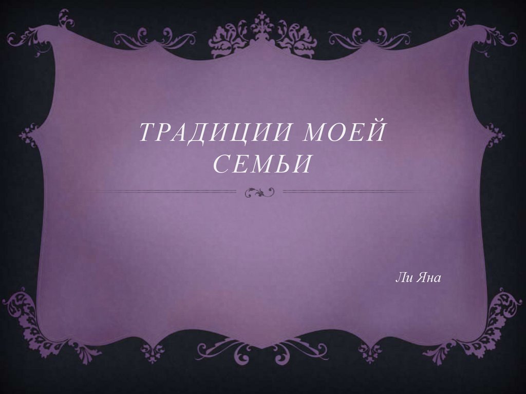 ТРАДИЦИИ МОЕЙСЕМЬИ