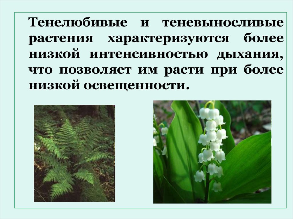 Тенелюбивые и теневыносливыерастения характеризуются более