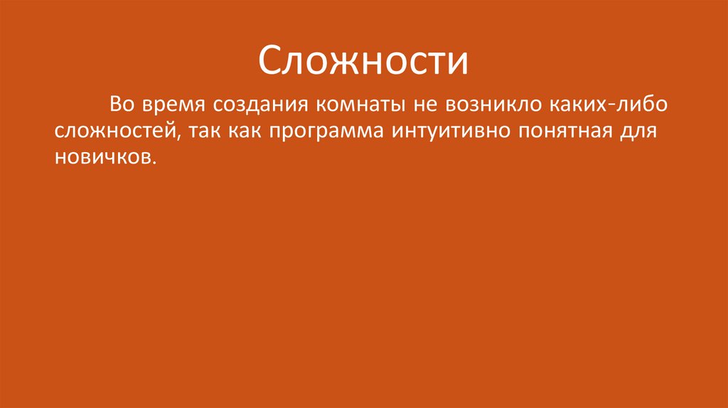 СложностиВо время создания комнаты не возникло каких-либо