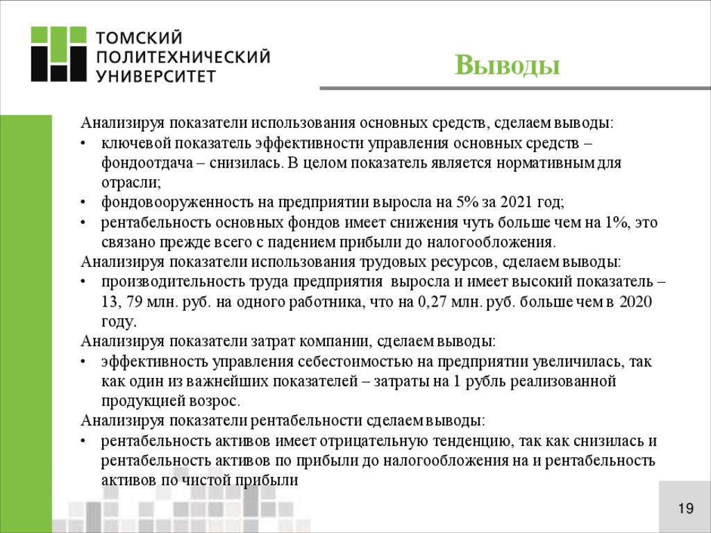• фондовооруженность на предприятии выросла на 5% за 2021 год;