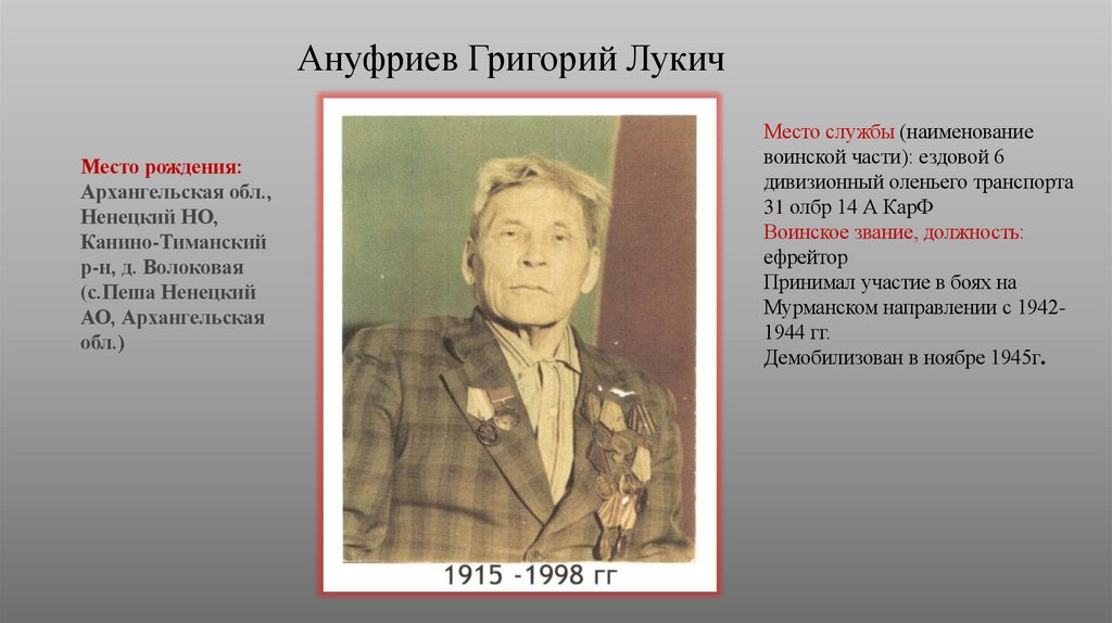 Ануфриев Григорий ЛукичМесто рождения: